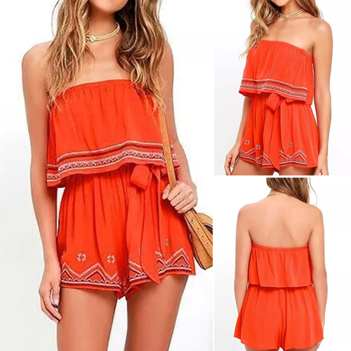 yourself a chance to look at this one. This romper boasts strapless, backless, gathered waist