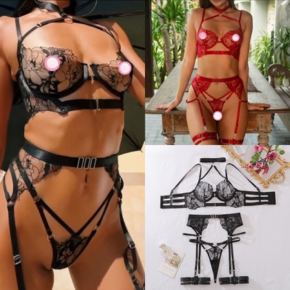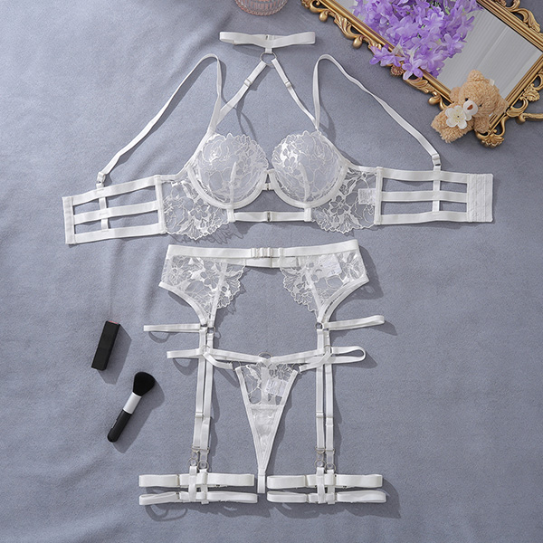 Sexigt Set med Strass, Utskuren Spets och Tre Delar Underkläder
