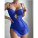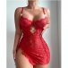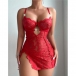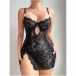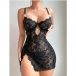 Sexig nattklänning i virkad blommig spets med strass, sidoslits och knytband