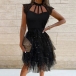 When you wear this dress,seductive appeal can come easily. The see-through gauze spliced details and feather hem design make this piece look so sexy and alluring. If you wanna be the focus,then you can just slip into this little stunner.
