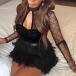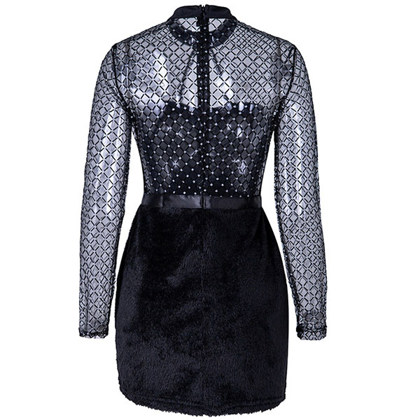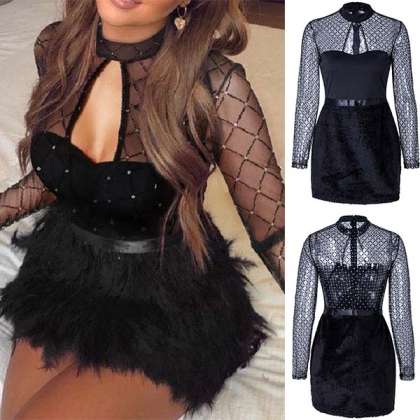 Want to make the maximum impact with minimal effort? Then slip into this super sexy dress. The see-through gauze spliced and hollow out design make this piece look so sexy and alluring. No matter when and where you are,you can easily arouse a splash when you wear this little stunner.