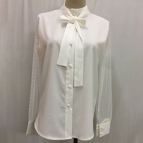 This shirt that exudes sexy and flirty is worth to have a place in your wardrobe. The see-through gauze spliced long sleeve design makes this piece look so alluring,while the lace-up stand collar design will further enhance its charm. You can match with you shorts,skirts or jeans to have a charming appearance.