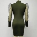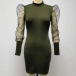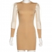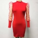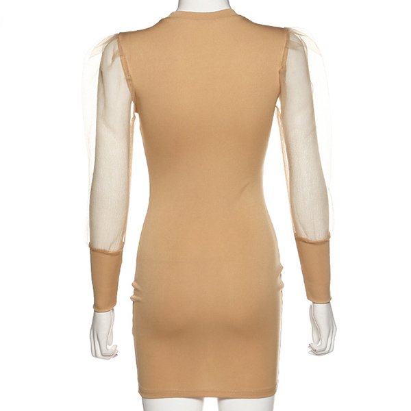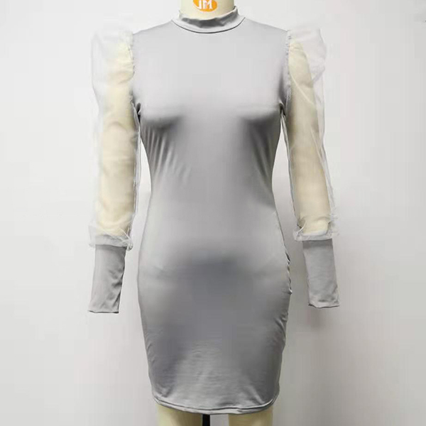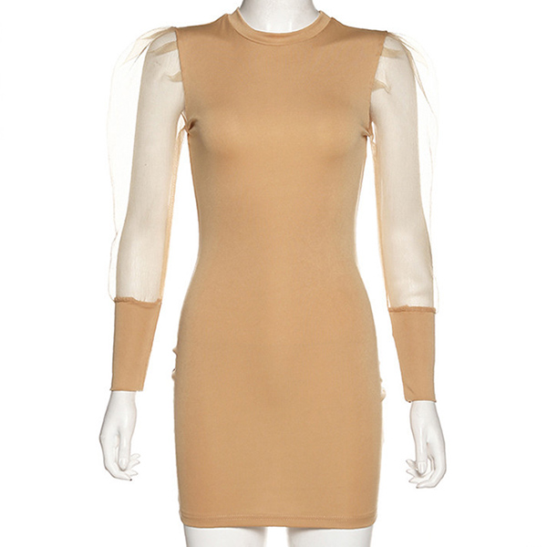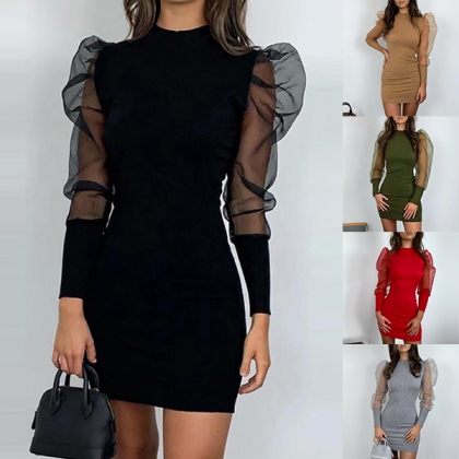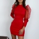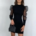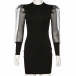 Sexy See-through Gauze Spliced Long Sleeve Round Neck Slim Fit Dress