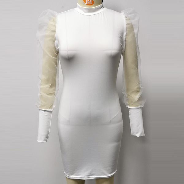 Seductive appeal can come easily once you slip into this dress. The see-through gauze spliced long sleeve design makes this piece look so sexy and flirty,while the fit silhouette design can highlight your slender figure. For your dinner dates or weekend gatherings,this little stunner can help you win more eyes.