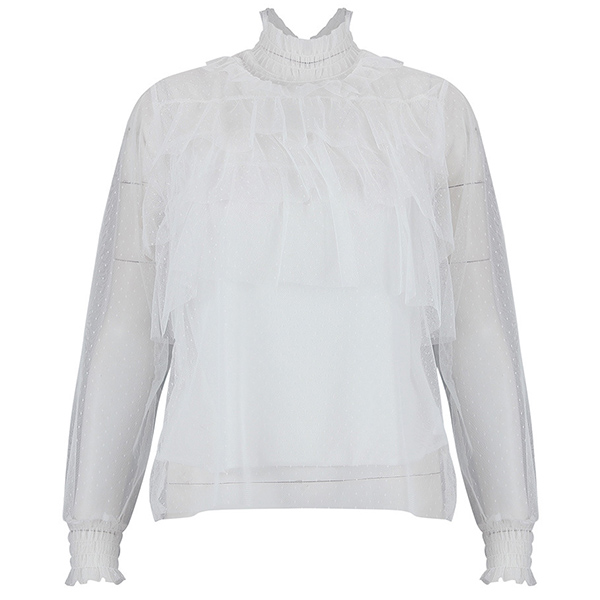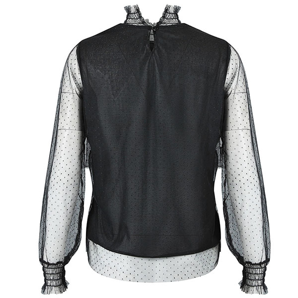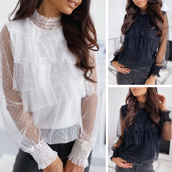 You can easily exude your sexy and feminine side through this wonderful top. Finished with long sleeve and stand collar design,the see-through gauze and dots details will make this piece look more eye-catching and attractive. Like this style? Then introduce it to your wardrobe!