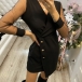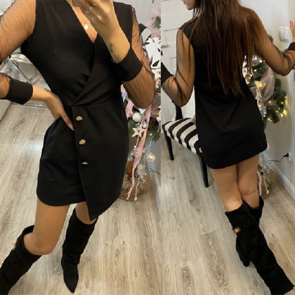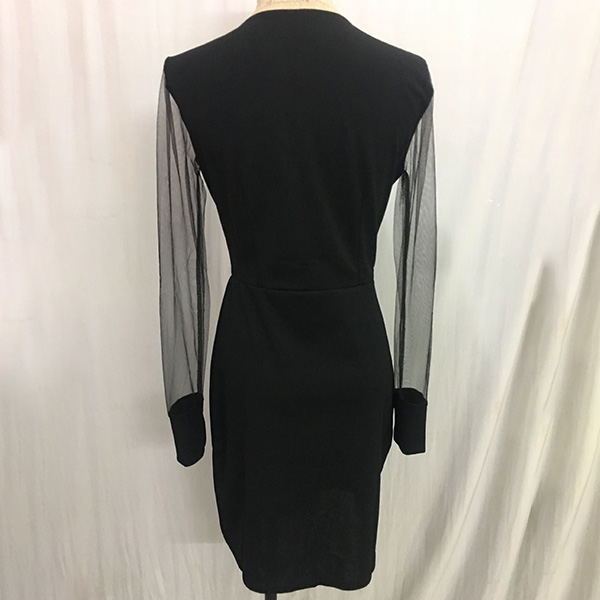 This dress comes with a classic yet flattering black tone,finished with a fit silhouette,which can better highlight your figure,while the v-neck and see-through gauze spliced long sleeve design can make you look sexy and flirty. When you wear this little stunner,you can easily arouse a splash!