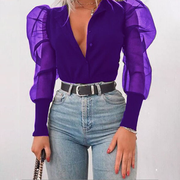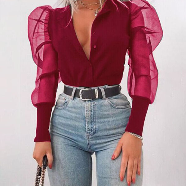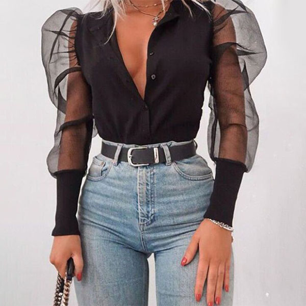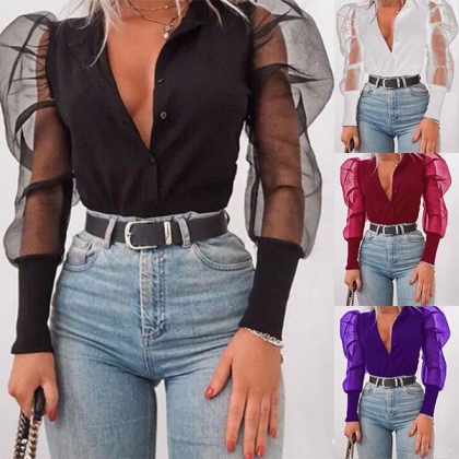 No matter when and where you are,you can easily be the focus when you wear this sexy and flirty top. The deep v-neck and see-through gauze spliced puff sleeve design make this piece look so sexy and distinctive. When matching with a high waist bottom and a stunning necklace,you are bound to arouse more attention.