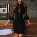Add a touch of sexy and flirty vibes to your look with this dress. What makes this piece look so attractive? It owes to the see-through gauze spliced and trumpet sleeve design. Meanwhile,the fit silhouette design will demonstrate your slender figure. Your beauty and femininity can have a full display in this dress.