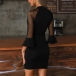 Sexy See-through Gauze Spliced Trumpet Sleeve Round Neck Slim Fit Dress
