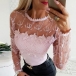 Sexy See-through Lace Spliced Long Sleeve Round Neck T-shirt