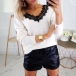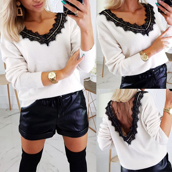 Look lively and full of charm with the exceptional style of this long sleeve top. Its soft and breathable fabric can ensure you a comfortable day,while the see-through lace spliced details and v-neck design will offer you a sexy and flirty look. No matter matching with a shorts,skirt or jeans,you can look charming enough!