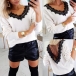 Sexy See-through Lace Spliced Long Sleeve V-neck Top