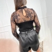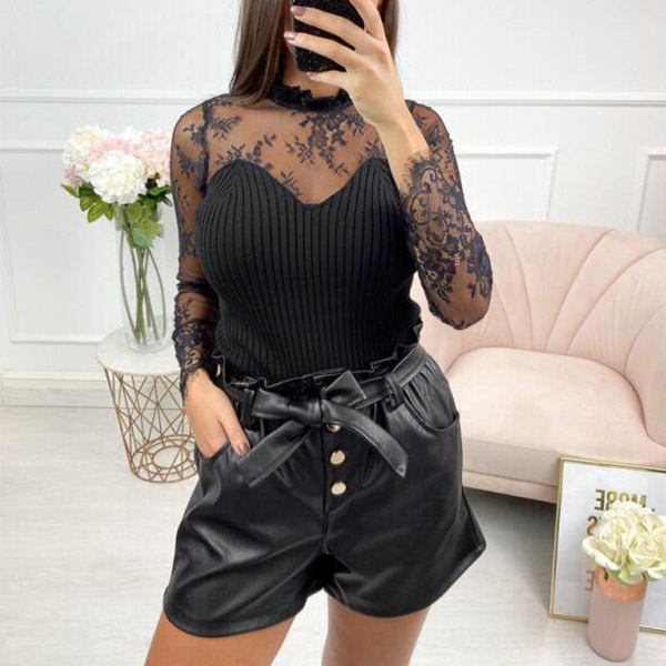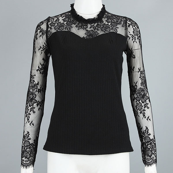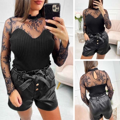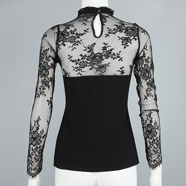It is an easy thing to arouse more attention when you dress yourself up with this wonderful top. The see-through lace spliced details and ruffle collar design make this piece look so sexy,flirty and feminine. You can simply matching with your favourite bottom,then you can look stunning enough!
