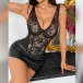 Sexig ärmlös blus i spets med knytband och leopardmönster