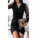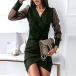 Sexy Semi-through Gauze Spliced Long Sleeve V-neck Irregular Hemline Bodycon Dress