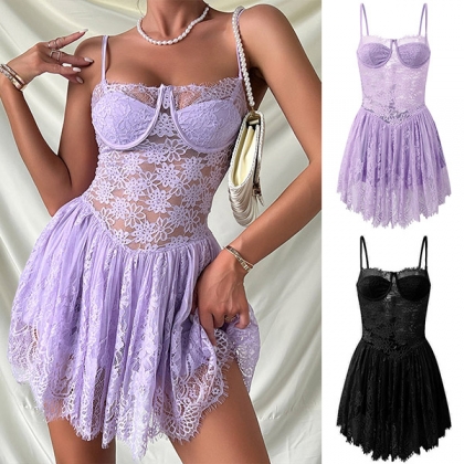 Sexy Semi-through Lace Spliced Push-up Lingerie Nightwear Dress/Dancing Dress