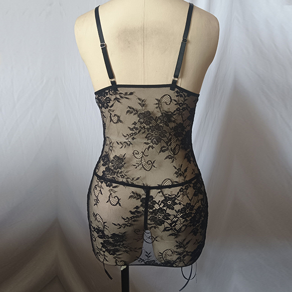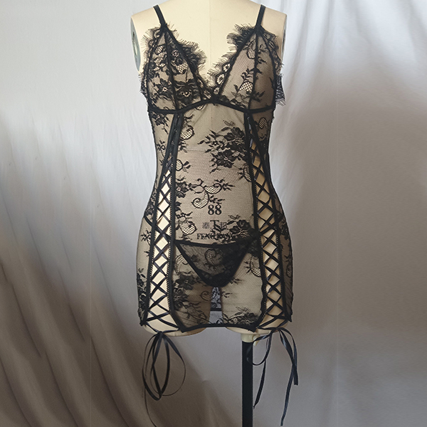 Sexig nattklänning med V-ringad halvgenomgående snörning och öppen rygg