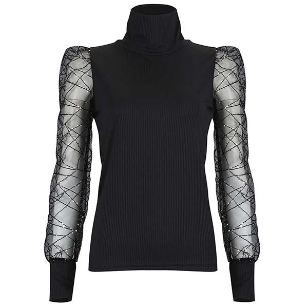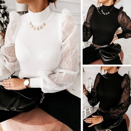You can look sexy yet flirty when you wear this wonderful top. What makes this piece look so attractive? It owes to the gauze spliced long sleeve and sequin details. Meanwhile,the fit silhouette design can showcase your perfect body-line. Perfect fit for matching with different style bottoms.