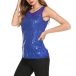 Sexy Sequin Gauze Spliced Sleeveless Round Neck Top