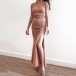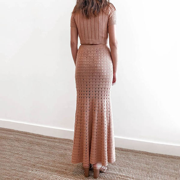 Your style and charm can have an instant boost when you dress yourself up with this two-piece set. Solid color style,including a short sleeve round neck crop top and a high waist slit hem fishtail skirt,this two-piece set can exude your sexy and feminine side. Definitely,you can gain more eyes when you wear this two-piece set.