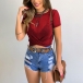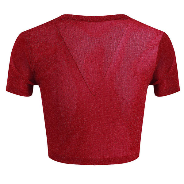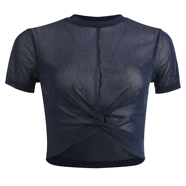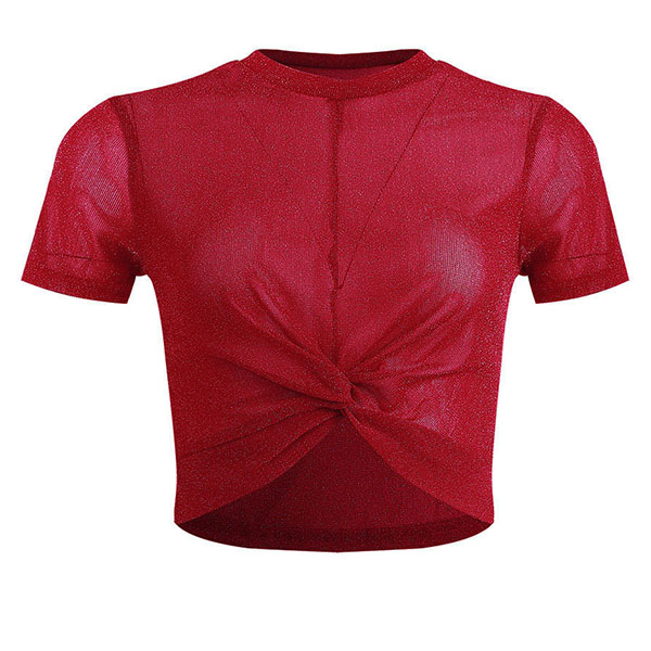 Sexy Short Sleeve Round Neck Crossover Hem Crop Top