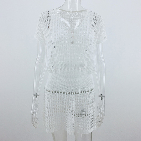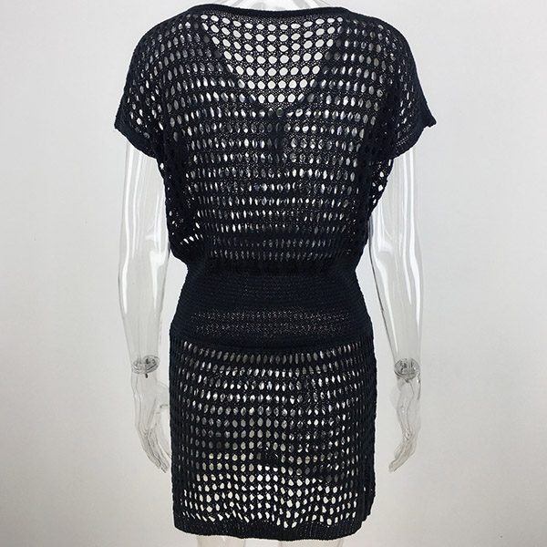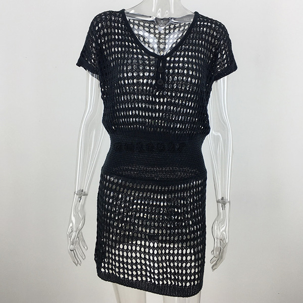 Sexy Short Sleeve V-neck Hollow Out Bikini Smock Dress