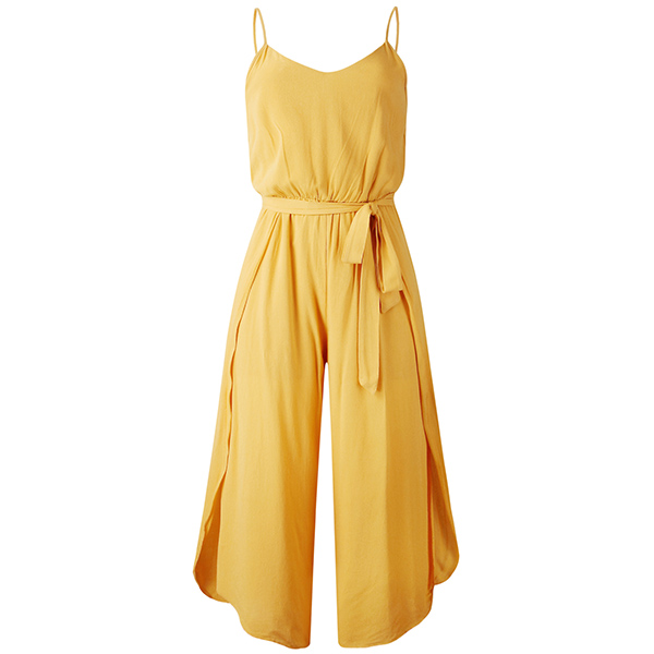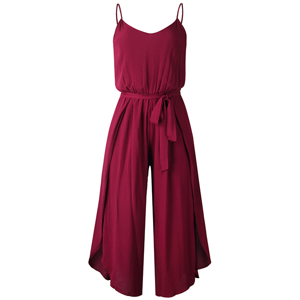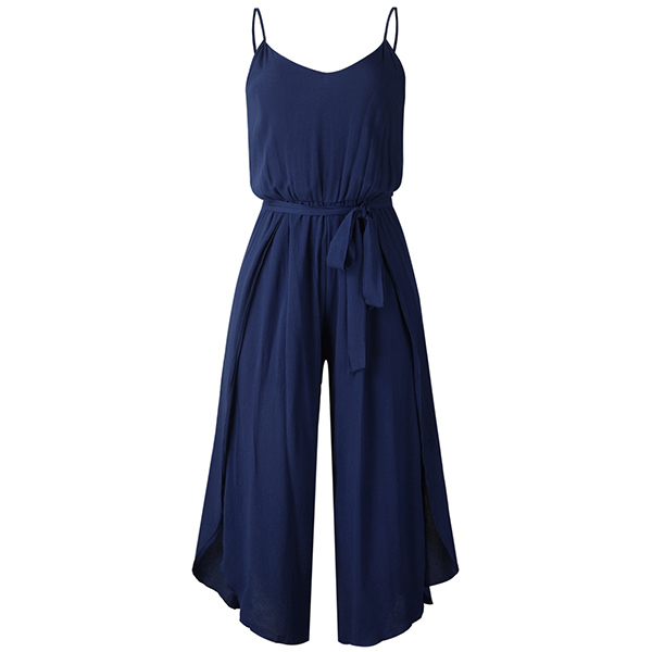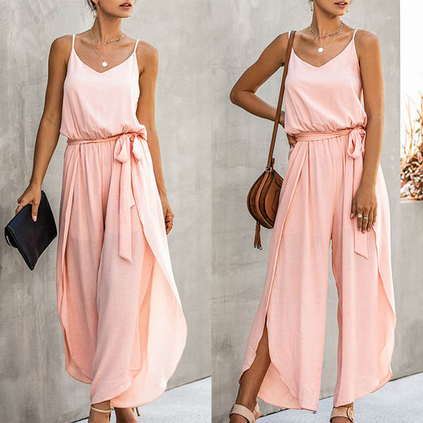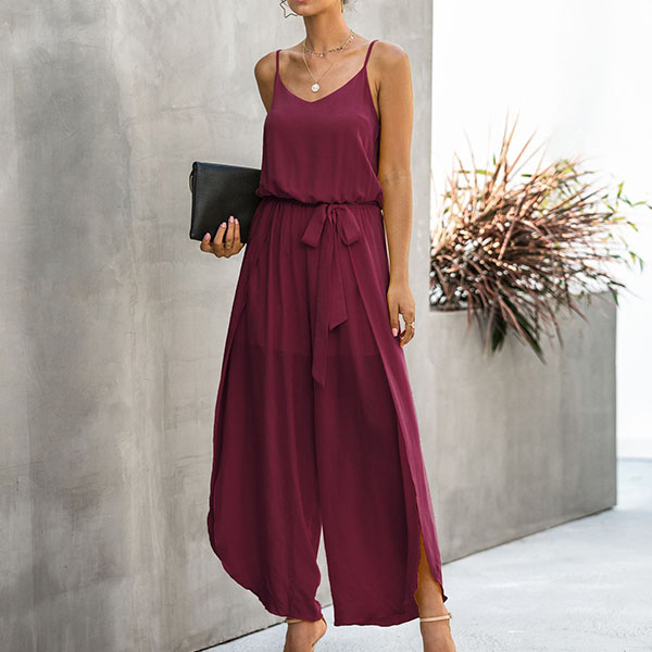 When the summer season hits,you can just slip into this sling jumpsuit to draw more attention. Solid color style,the side slit hem and v-neck design can exude your charming feminine appeal. No matter when and where you are,you can easily be the focus.