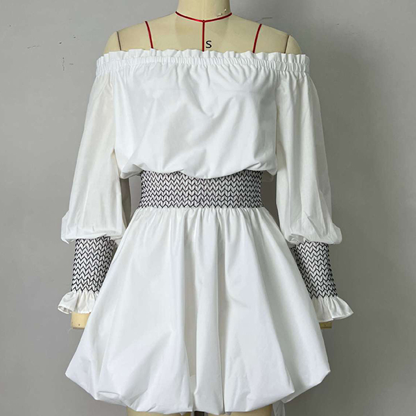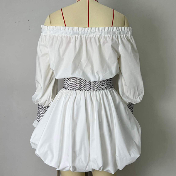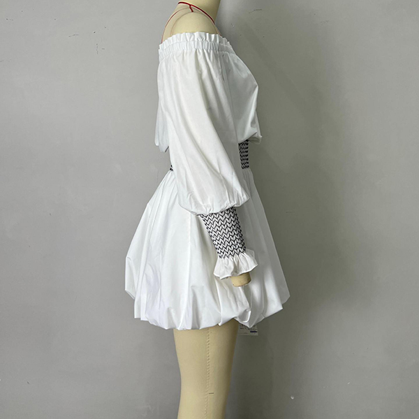 Sexig miniklänning med asymmetrisk axel, lång ärm och dragsko i midjan
