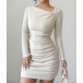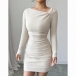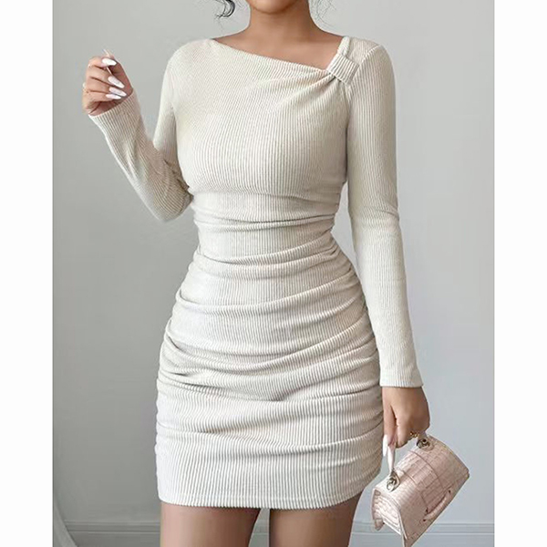 Bodyconklänning med asymmetrisk halsringning, långärmad och rynkad – sexig festklänning