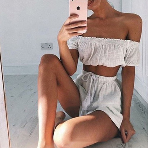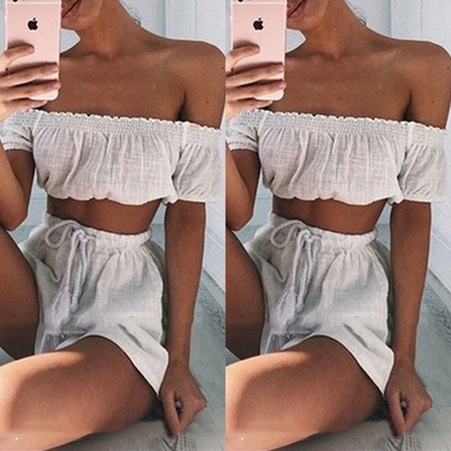 Solid color style,including a slash neck crop tops and a high waist pants,this two-piece set is sure to give