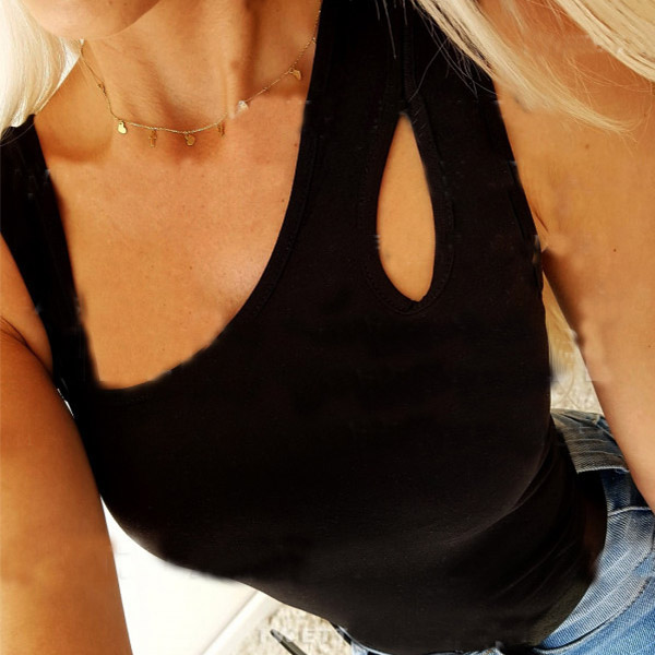 Only need one glance,you would be attracted by this chic and sexy tank top. It comes with a solid color,the oblique v-neck,hollow out design and fit silhouette can make you look sexy and flirty. All-match design allows to be matched with different style bottoms.