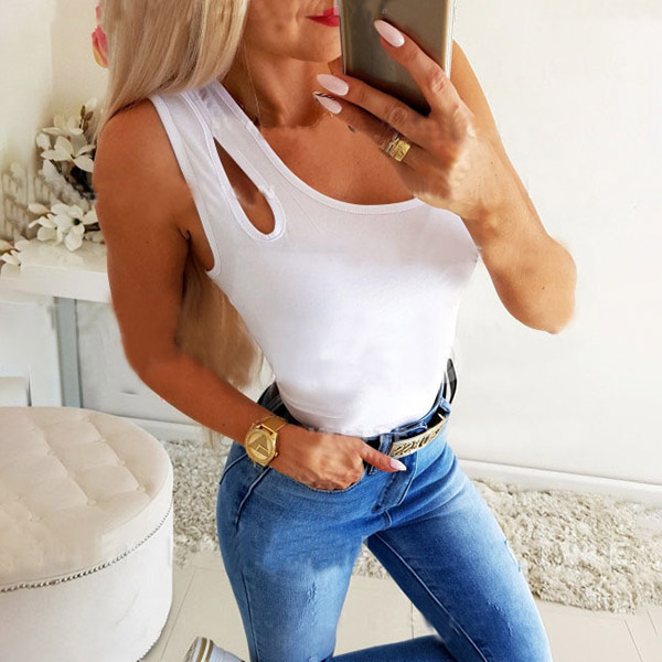Sexy Sleeveless Oblique V-neck Hollow Out Slim Fit Tank Top
