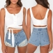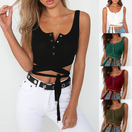 Sexy Sleeveless Round Neck Lace-up Hem Crop Top