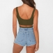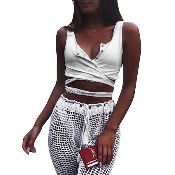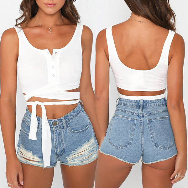 In these sun-soaked summer days,this crop top can easily strike your mind. Solid color style,the backless and lace-up hem design make this piece look so sexy and distinctive. It is a good chance to flaunt off your slender waist. Matching with your high waist bottoms would be a good idea.