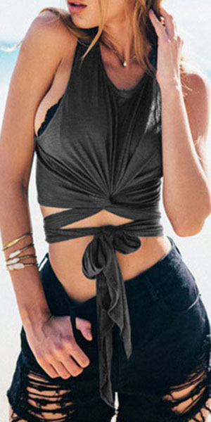 and round neck design. What's more,its lace-up knotted design makes this piece more attractive.