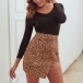 Sexy Slit Hem High Waist Slim Fit PU Leather Skirt
