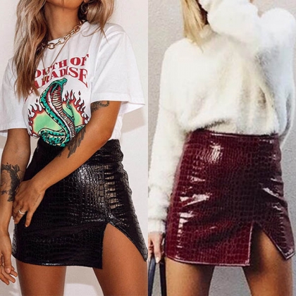 Every girl should have such a stylish and all-match skirt in her closet. This PU leather skirt is designed with high waist and a fit silhouette,which can showcase your slender legs. The slit hem design will lend you a dash of flirty and sassy vibes. Try to match with your favourite top to finish a stylish and charming dress up.
