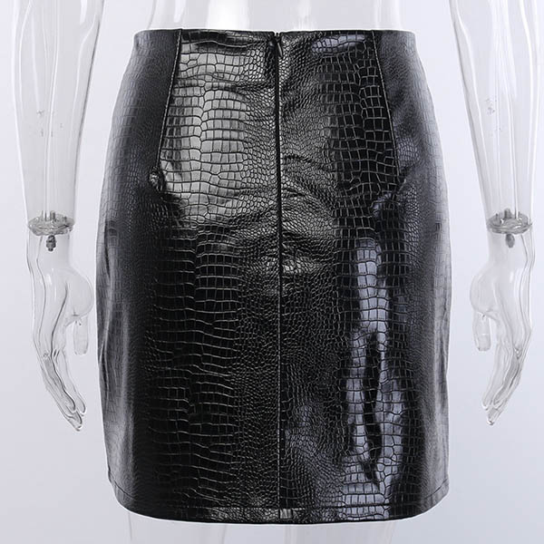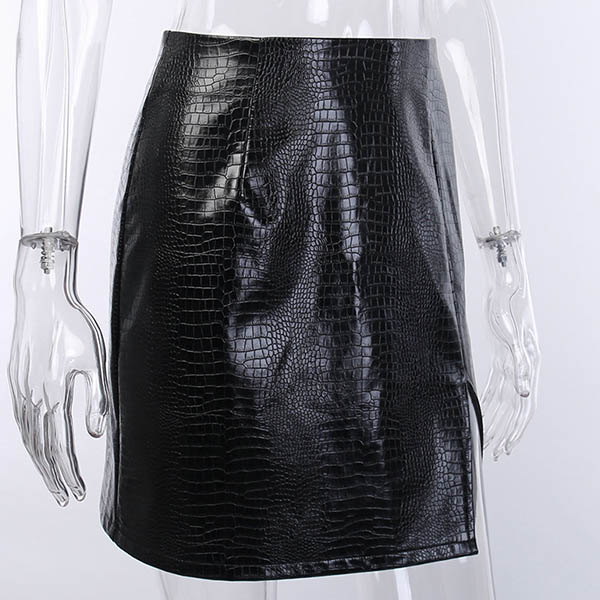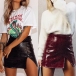 Sexy Slit Hem High Waist Slim Fit PU Leather Skirt