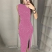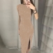 Sexy Slit Hem Sleeveless Round Neck Slim Fit Party Dress