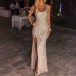 Sexy Slit Hem Sleeveless Square Collar Sequin Party Dress
