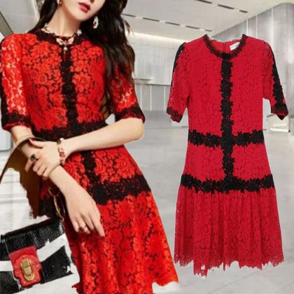 Se exceptionellt elegant och fantastisk ut när du går in i den här spetsklänningen. Kommer med en iögonfallande och förtjusande röd ton, avslutad med fyrkantig krage, slits nederkant och en passform siluett, den här klänningen kan utstråla din flirtiga atmosfär samtidigt som den visar din smala figur. Så varför inte spara den här klänningen för dina fina evenemang?