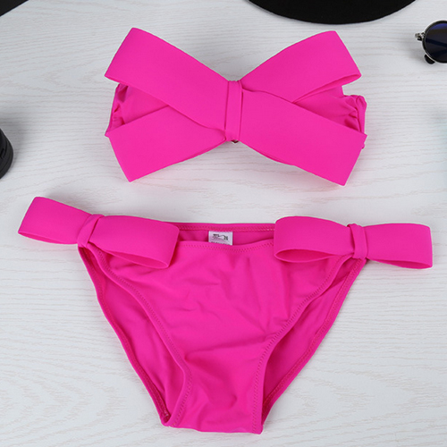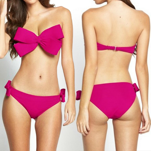 Solid color style,its 3D bowknot design makes this bikini look so charming and attractive. Two-piece set or