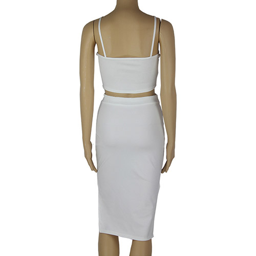 Solid color style,including a cami tops and a high waist slit hem bust skirt,this two-piece set