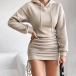 Sexig dragsko med enfärgad huva och långärmad stil - Dragsko på sidan