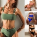 When wanna head to the seaside,we suggest you choosing this bikini set! Solid color style,including a backless bikini top and a high waist bikini bottom,this bikini set can give you a long-lasting comfort while it showcases your seductive curve.