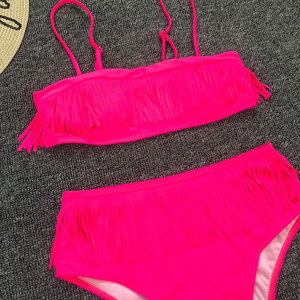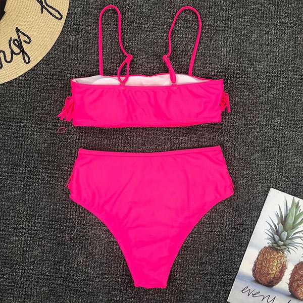 Hey,girls,it is a good time for you to head to the seaside to relax yourself when the summer season hits. So take this bikini set with you. Solid color style,including a backless sling bikini top and a high-waist bikini bottom,the tassel details make it look more eye-catching and distinctive. You can have a memorable and wonderful time in this bikini set!