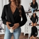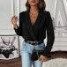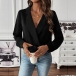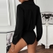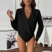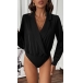 Denna svarta bodysuit har en enfärgad design, en v-ringning i lapel och långa ärmar för en sexig och sofistikerad look. Kombinera den med högmidjade byxor och klackar för att förlänga dina ben och skapa en fantastisk look.