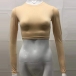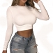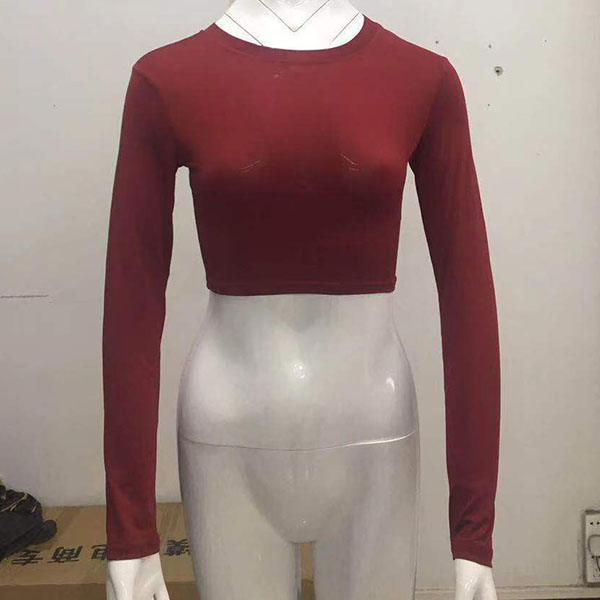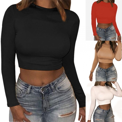 It is a good chance to flaunt off your slender waist through this crop top. It boasts a solid color,finished with long sleeve,round neck and a fit silhouette,this piece bears a simple design style,but it can offer you a comfortable day with its soft and breathable fabric. Matching with your high waist bottoms would be a good idea.