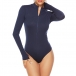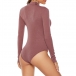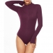 This knit bodysuit features a solid color,with long sleeve and stand collar design,which can showcase