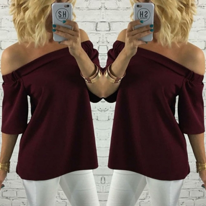 Trendy and noble wine red can highlight your fair skin. With off shoulder and half sleeve design,